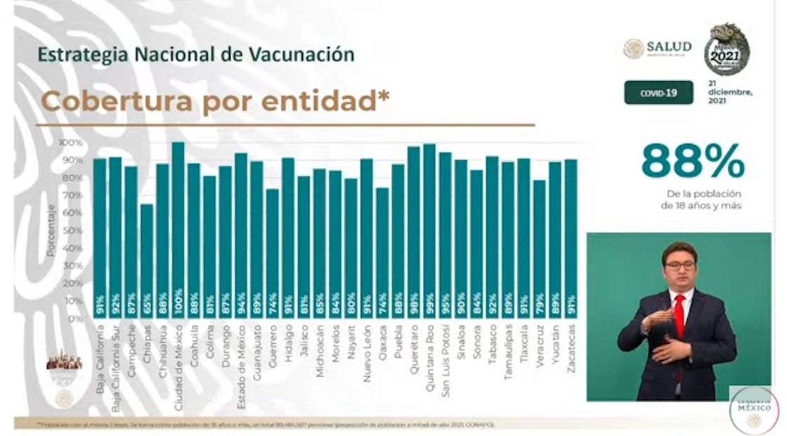 Ya nada más como dato extra, hay cuatro estados que aún no alcanzan el 80% de la vacunación contra COVID-19, aunque están algo cerca.