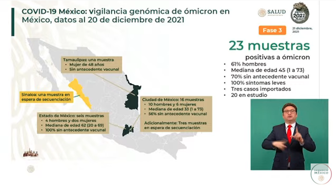 Como ven, la Secretaría de Salud topó tres casos de Ómicron que ya fueron estudiados a detalle, pero hay otros 20 que fueron reportados por un instituto que aún, explicó López-Gatell, no ha reportado al Sistema Nacional de Vigilancia Epidemiológica.