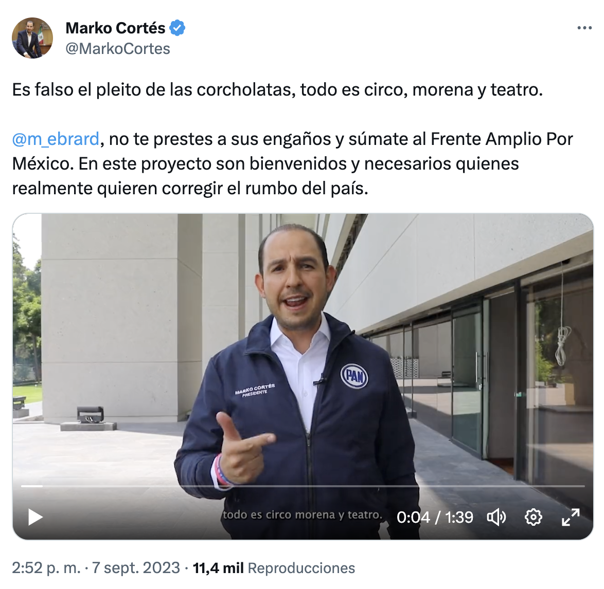 Marko Cortés afirma que el pleito entre las corcholatas de Morena es puro circo hasta que se demuestre lo contrario.