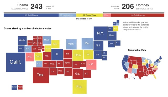 Posibilidad de ganar el estado: Obama-87%; Romney-13%