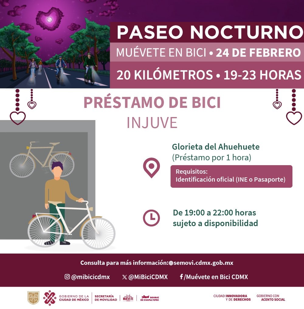 El sábado 24 de febrero se llevará a cabo el Paseo Nocturno en Bici por el Día del Amor y la Amistad para que se lancen con su crush o seres queridos. O solitos para conocer gente, no le hace.