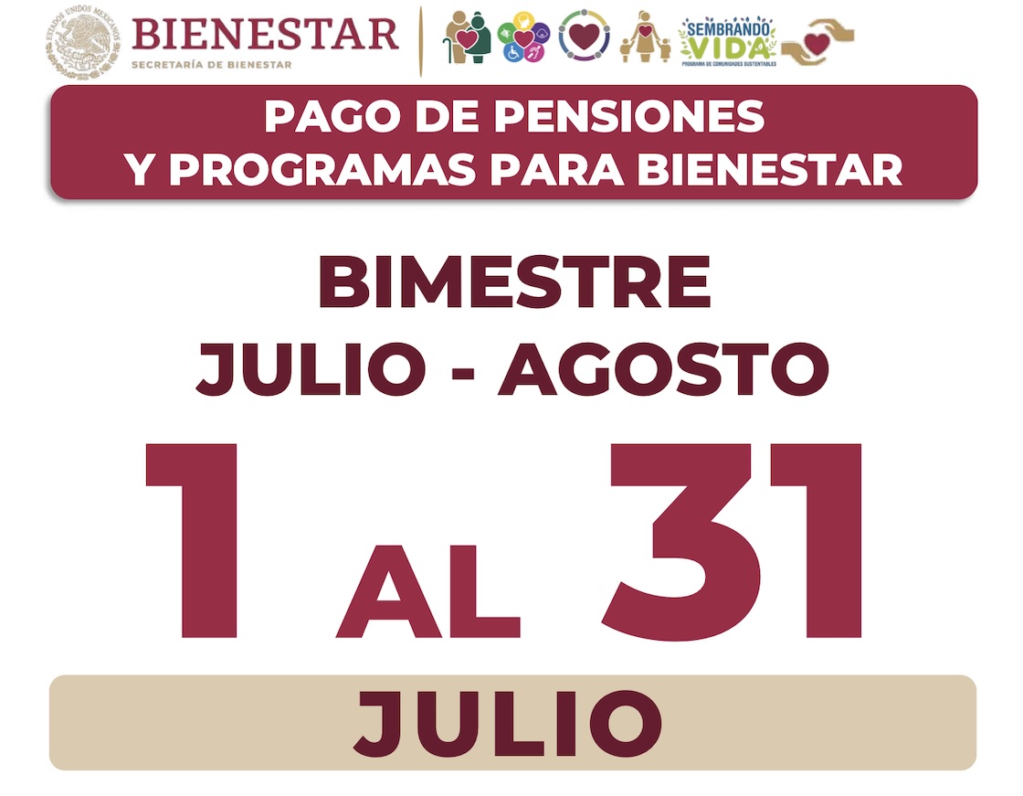 En general, todos los programas sociales entrarán en esta tanda del 1° al 31 de julio. Sólo hay que estar atentos al calendario de depósitos que la Secretaría del Bienestar compartirá. Este calendario, recordemos, es por la letra del primer apellido.