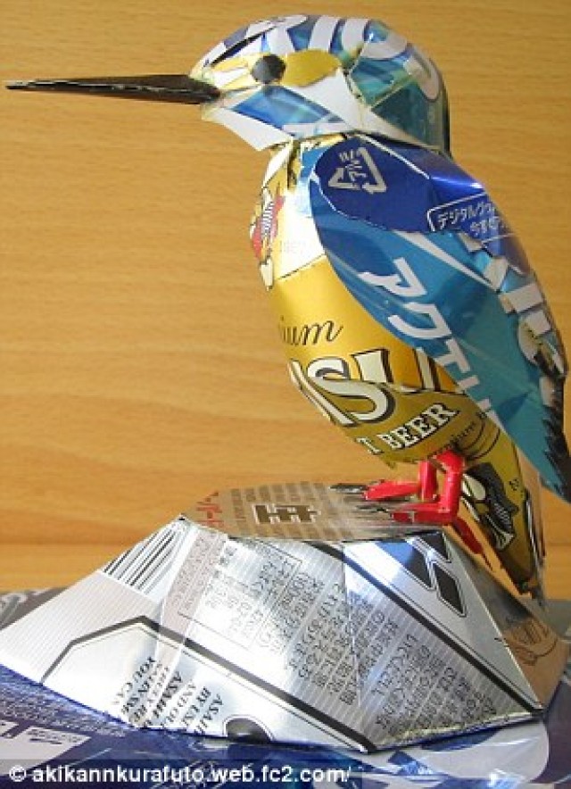 Macaon es un artista japonés que suponemos bebe mucho, ya que se dedica a reciclar las latas de sus cervezas y de otras bebidas, y hace origami con ellas.