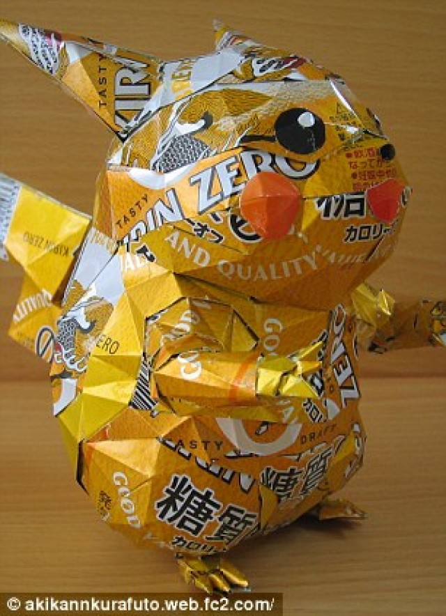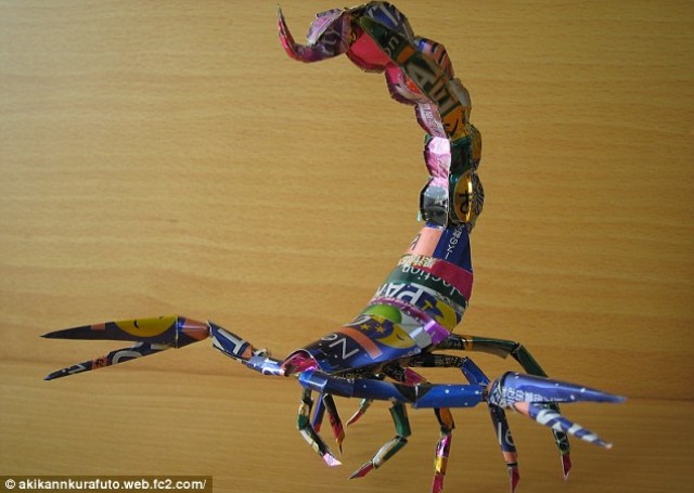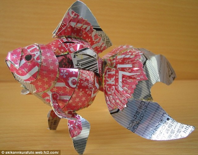 Macaon es un artista japonés que suponemos bebe mucho, ya que se dedica a reciclar las latas de sus cervezas y de otras bebidas, y hace origami con ellas.