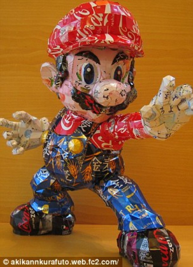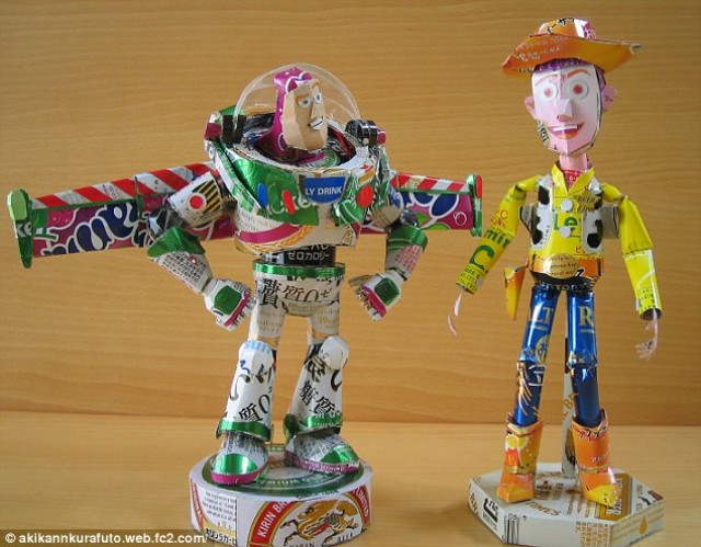Personajes como Super Mario, Woody y Buzz, Darth Vader, un japonés los hace con viles latas de aluminio.