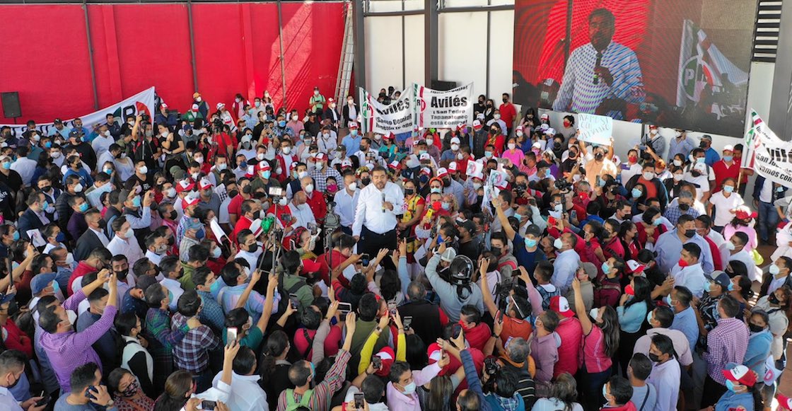 En medio del aumento de los contagios de COVID-19, en contexto de la variante Ómicron, y al estilo de los viejos tiempos, Alejandro Avilés celebró con su comitiva el registro en el Comité Directivo Estatal del PRI.