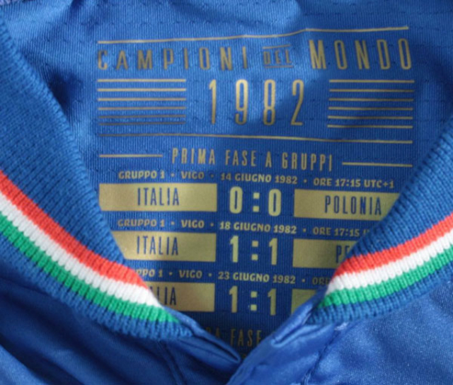 Para conmemorar un aniversario más de este logro para el calcio, Puma decidió sacar una playera haciendo referencia a la obtención de la Copa del Mundo de aquel año. La camiseta es prácticamente la misma que actualmente ocupa el seleccionado italiano, pero tiene algunos cambios: el cuello está en color azul con tres franjas con los colores de la bandera (verde, blanco, rojo); el escudo de la Federación Italiana lleva detalles en color dorado y en la parte interior de la camiseta se ve un dibujo alusivo al Mundial España 1982.