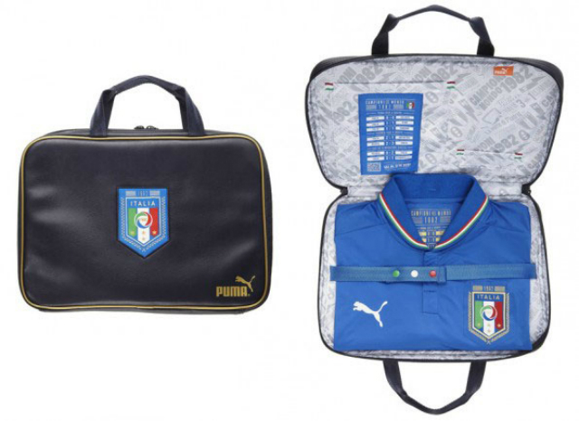 Esta edición especial y limitada viene dentro de una pequeña maleta de cuero en color negro con vivos en dorado y con el escudo de la Federación Italiana. Sí, muy bonita, elegante, pero lo importante… ¿cuánto cuesta? Pues si ustedes son fanáticos de Italia pueden conseguir esta camiseta en las principales tiendas on line a un precio de 150 dólares, más envío claro…