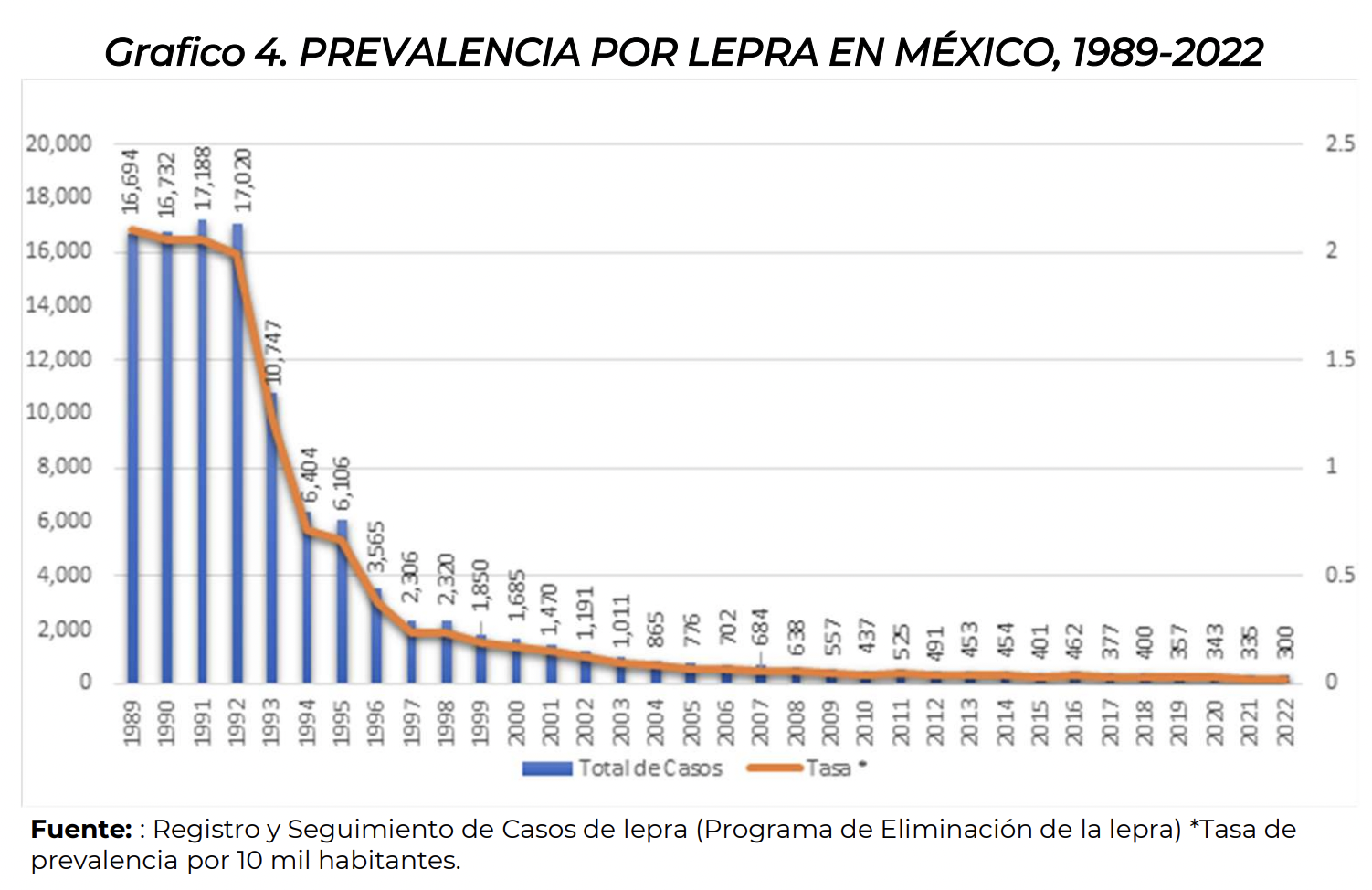 Lo primero que hay que mencionar es que a nivel nacional se ha observado un descenso del 98% en relación con 1989, con una tasa de prevalencia de 0.023 por cada 10 mil habitantes.