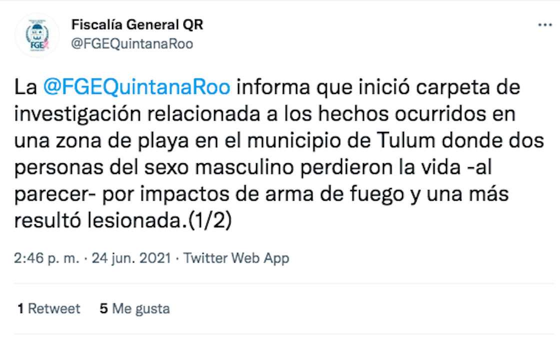 Días después, el 25 de junio hubo otra balacera, pero en una playa de Tulum. Ahí, dos hombres fueron asesinados y otro resultó herido.
