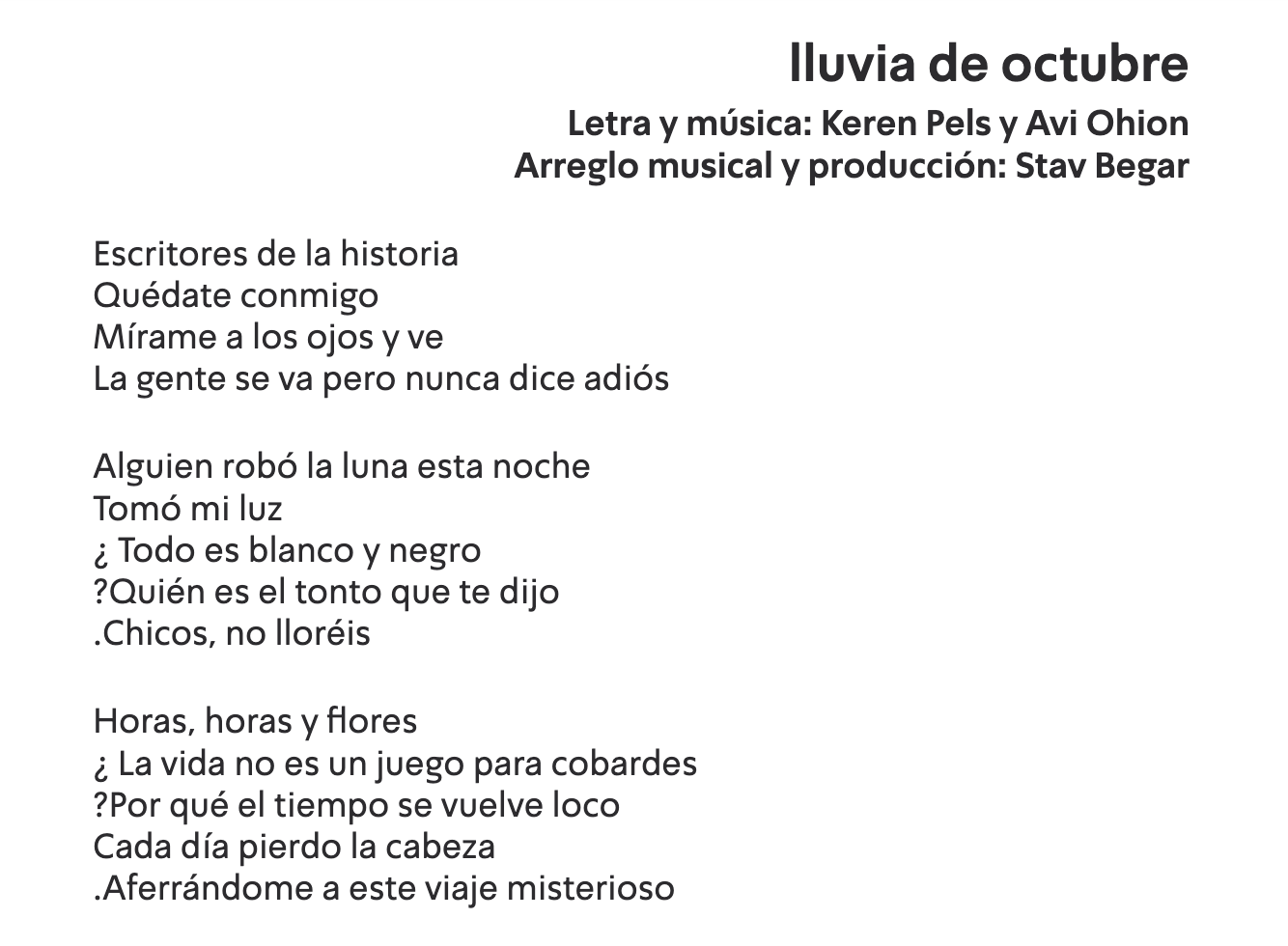 La canción original se llama “Lluvia de Octubre”, escrita y compuesta por Keren Pels y Avi Ohion, e interpretada por Eden Golan, cantante ruso-israelí que comenzó su carrera justo en el Festival de la Canción de Eurovisión Junior 2015.