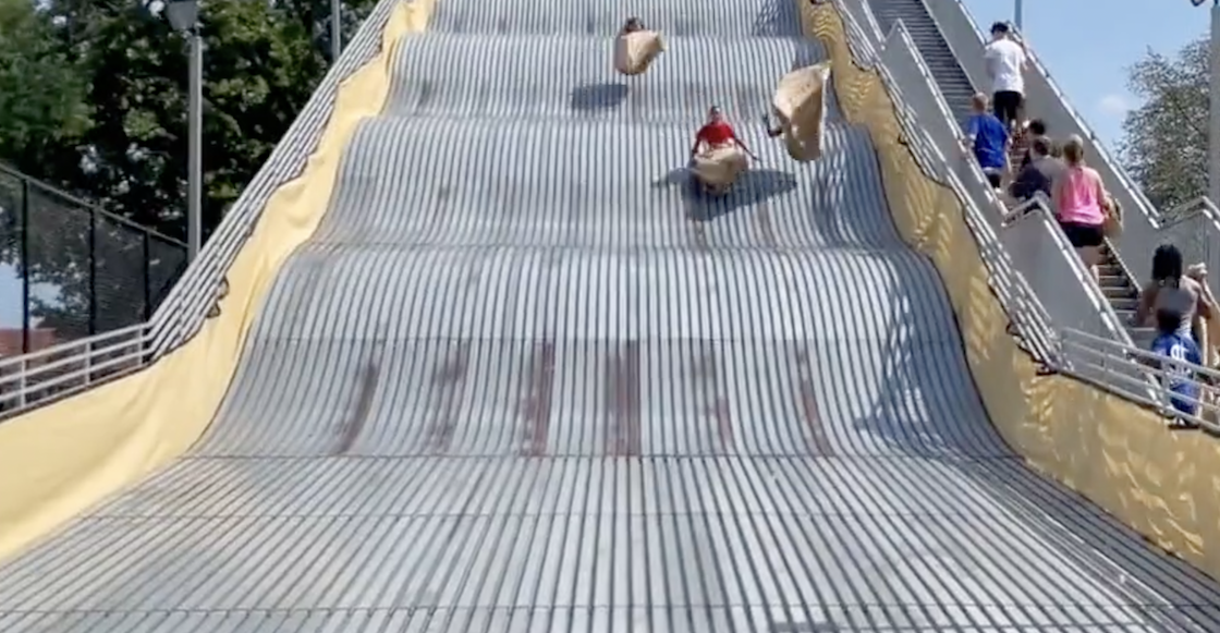 ¿Lo mejor de todo? Esta resbaladilla gigante de Belle Isle Park en Detroit se ha convertido en toda una sensación. CNN ha reportado su historia, los canales de comedia entrevistan a los accidentados —”Subir te cuesta 1 dólar, pero la contusión dura toda la vida”, bromeaban— e incluso raperos locales le han dedicado canciones.