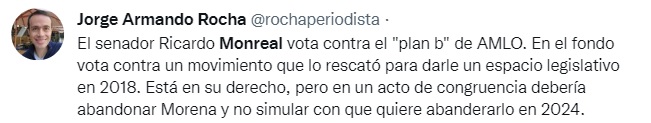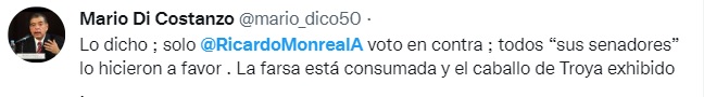“El Senado de la República logró la aprobación del plan ‘B’ en materia electoral, e hizo justicia a la clase trabajadora al duplicar el periodo vacacional”, presumió Morena en su cuenta Twitter oficial. “Felicitamos a las y los senadores que hoy han vuelto a hacer historia”, agregó… nomás le faltó: a todos, menos a Monreal.