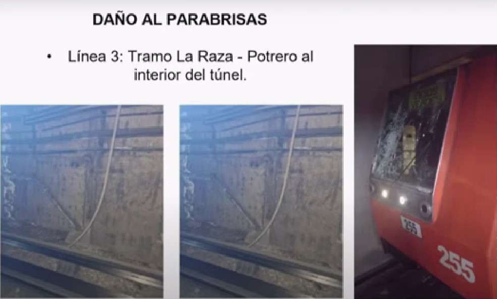 El segundo ocurrió en la misma Línea 3. Explicaron que el parabrisas de un tren sufrió daños luego de ser golpeado por un cable que colgaba. Al hacer la revisión, se percataron de un corte intencional del cable de baja tensión. De hecho, detectaron que las rejillas de ventilación en la supeficie fueron cortadas, dando evidencia del robo de 45 metros de cable.