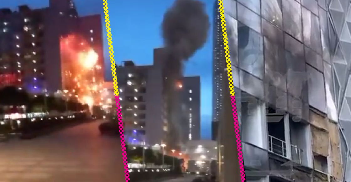 Fue a través de redes sociales donde se difundieron videos del momento en que un dron explota junto a un edificio de oficinas. En las imágenes se ve no sólo cuando se da la explosión, sino la forma en que los vidrios de un piso quedaron totalmente destruidos.