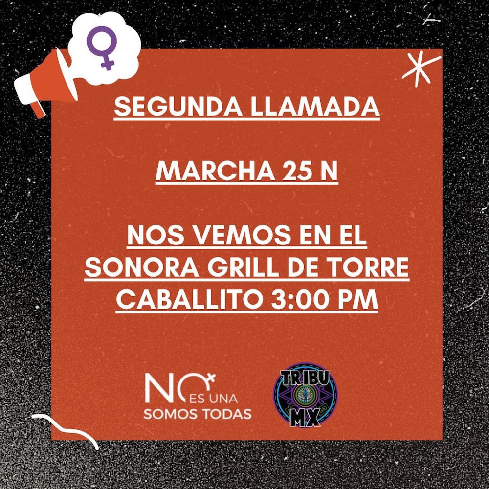 Este contingente convoca a las 3 de la tarde frente al Sonora Grill de la Torre del Caballito, en Reforma.