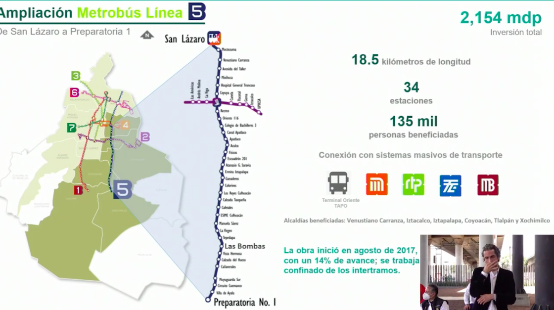 Por otra parte, el director general de Metrobús, Roberto Capuano, indicó que la Línea 5 tendrá hasta 76 unidades nuevas de la marca Mercedes Benz, con lo cual se sustituirán hasta 166 microbuses y también se redistribuirán 61 camiones de RTP en otros puntos de la Ciudad de México.