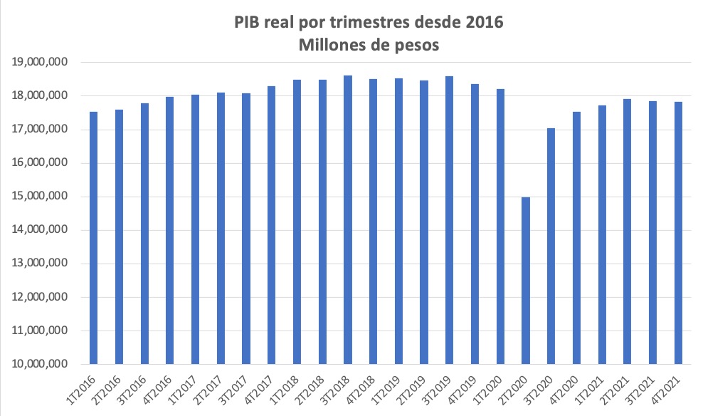 Después del trancazo de 2020 y el levantón que hubo, la economía mexicana permaneció tres trimestres al hilo sin crecer, lo que llevó a varios analistas a hablar de una recesión técnica, aunque AMLO prefirió ver el asunto desde el punto de vista del bienestar y bueno, para 2022 apostó por un crecimiento del 5%, similar al PIB de 2021.
