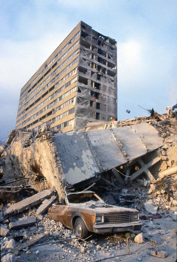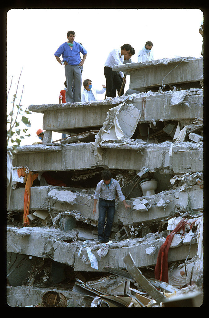 Una fotografía de Pedro Valtierra nos muestra cómo fue que el tiempo se detuvo aquella mañana del 19 de septiembre de 1985, cuando un sismo de magnitud 8.1 cimbró el Distrito Federal (hoy CDMX). Esa misma fecha, el 19S, reforzó su significado para la colectividad en 2017 y en este texto recurrimos a la experiencia de periodistas para conocer cómo fue la cobertura del primero.