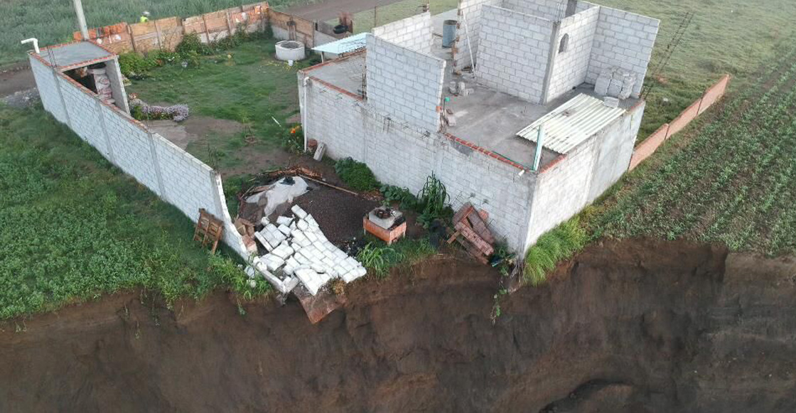 El asunto es que literamente al bordo del socavón hay una casa, de la cuál hace unas cuantas horas se cayó la barda perimetral y amenaza con seguir avanzando.