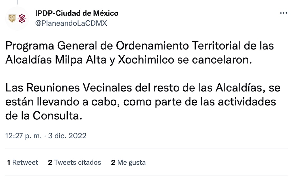 Y este fin de semana se llevaron a cabo las consultas, pero en Milpa Alta y Xochimilco —donde también surgió una protesta por el derecho al agua que fue duramente reprimida por la policía, ACÁ les dejamos más contexto— se cancelaron.