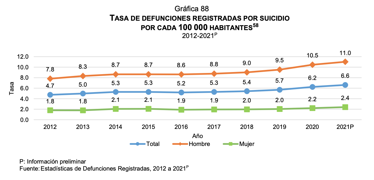 Si analizamos las cifras de los últimos años, observamos un aumento progresivo de los suicidios en México, más marcado en hombres que en mujeres.