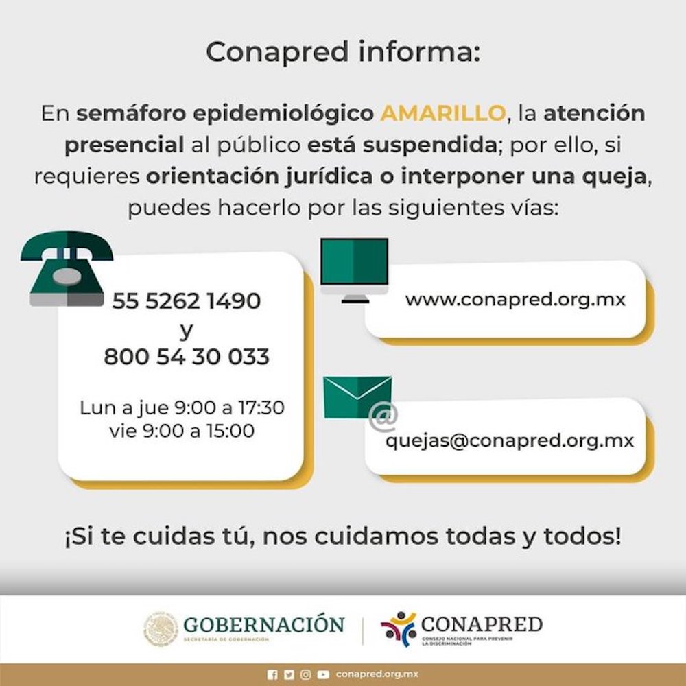 “Si necesitas iniciar una queja o solicitar orientación, te dejamos las vías disponibles para que puedas realizar estos trámites”.