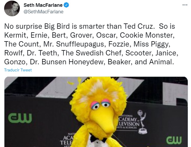 Ante tal arrebato del pajarote, el congresista del ala conservadora, Ted Cruz, no pudo más que expresar su tajante rechazo. Según el republicano, lo que Big Bird hace es propaganda del gobierno de Joe Biden dirigida a niños de cinco años.