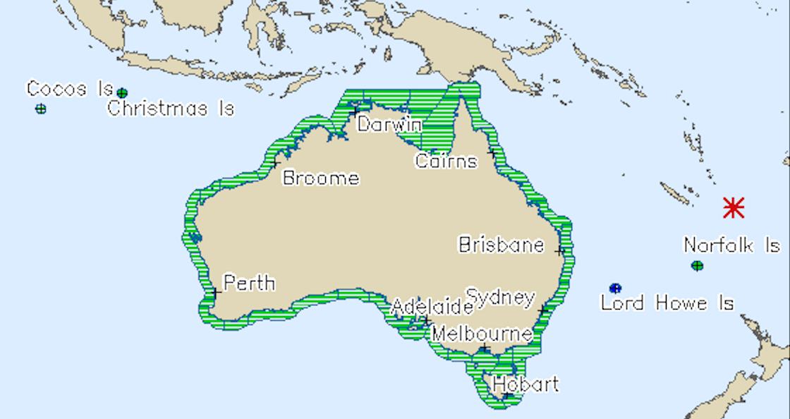 El Despacho de Meteorología de Australia confirmó un tsunami, por lo que lanzó una advertencia para Lord Howe Island. Por otra parte, señalaron que el tsunami afectará el área marina a partir de las 02:45 horas, tiempo local.