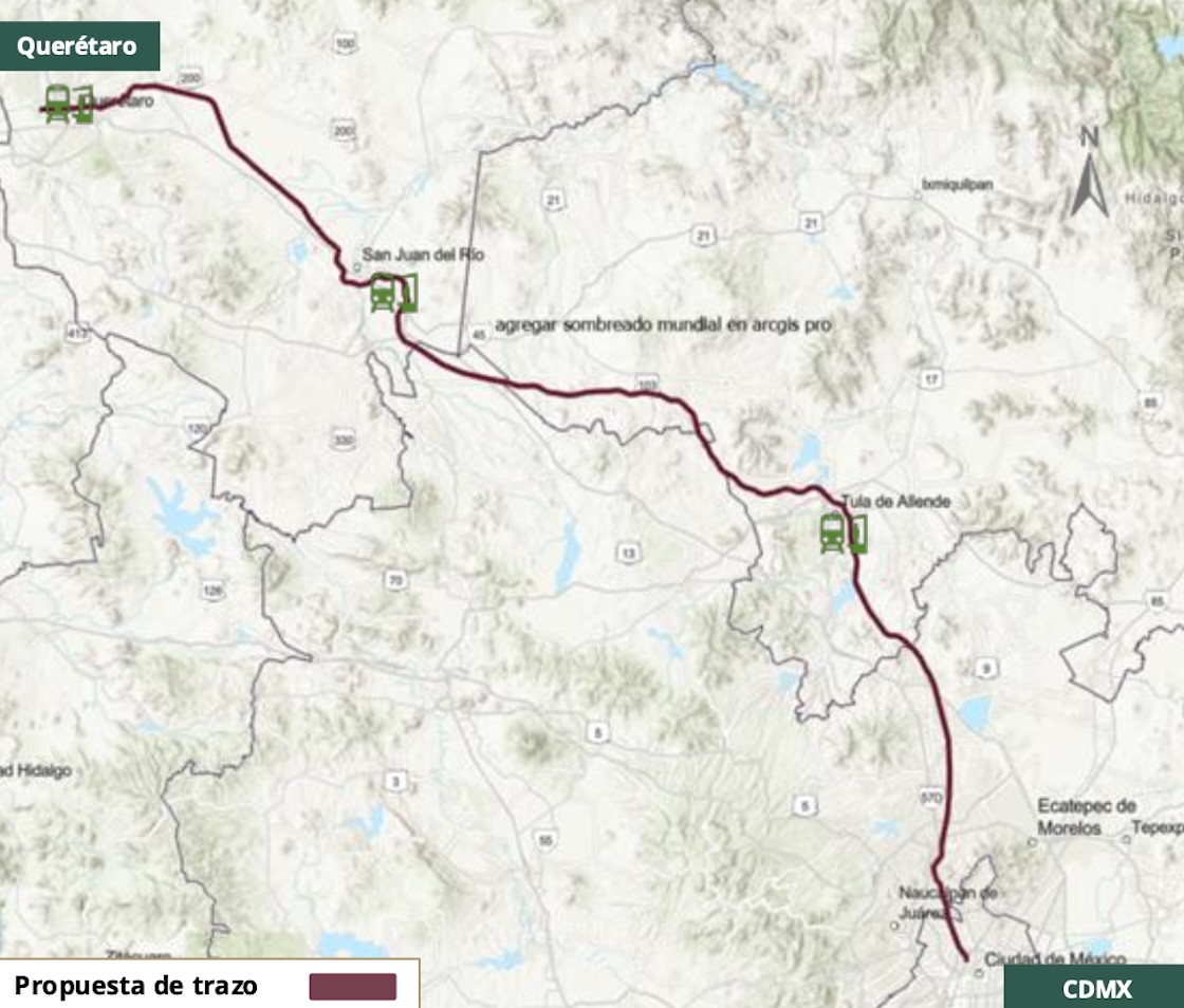 Las estaciones propuestas son: la terminal Buenavista, Tula de Allende, San Juan del Río y Querétaro.