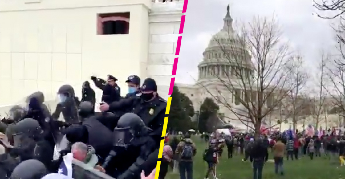 En redes sociales se difundieron videos que muestran el enfrentamiento de los simpatizantes de Trump con la policía que resguarda el Capitolio, edificio que alberga la Cámara de Representantes y la de Senadores en Estados Unidos. Estas personas pro-Trump desconocen la victoria de Joe Biden y exigen que se investigue el presunto “fraude” en los estados en los que ganó Biden.
