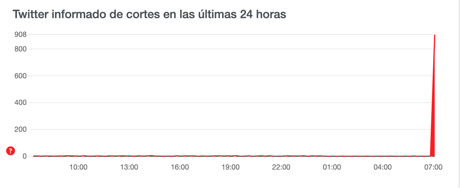 Según este monitoreo, la caída de Twitter -que ya se tardó un buen rato- ocurrió a nivel mundial. Vamos a hacerle un zoom al monitoreo en los últimos minutos.