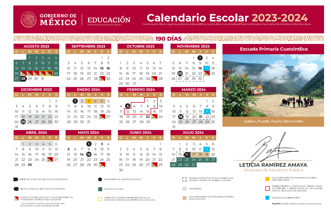 Este calendario del ciclo escolar de la SEP para 2023 y 2024, con un total de 190 días, aplica para preescolar, primaria y secundaria en escuelas públicas y todas las particulares que estén incorporadas al Sistema Educativo Nacional.