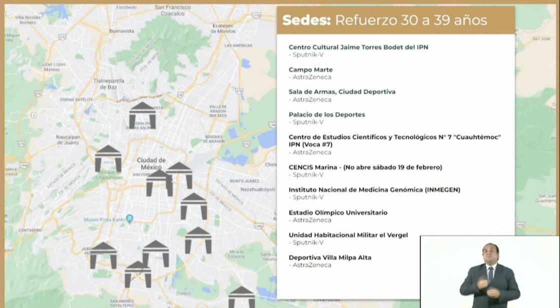 Habrá 10 sedes —que, de hecho, son las mismas que se usaron para jornadas anteriores como la de 40 a 49 años— donde se estarán aplicando las vacunas de AstraZeneca y Sputnik V.