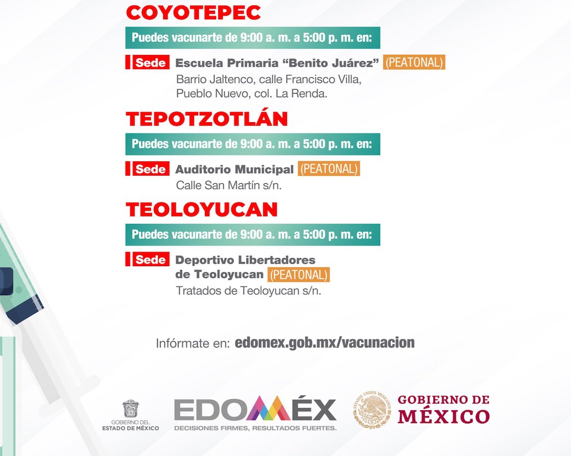 Mientras, los módulos de vacunación en Tlalnepantla estarán en:
