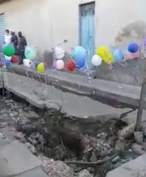 Le organizaron una fiesta de cumpleaños al socavón que cumplió seis meses