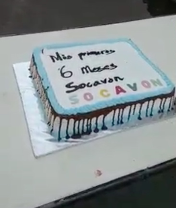 En las imágenes (que dejaremos a continuación) se puede ver cómo la fiesta de cumpleaños del socavón estuvo adornada de globos y serpentinas que amarraron a unas varillas que tiene. Pero la cosa no quedó ahí, pues además hubo pastel (con todo y felicitación) y hasta un conjunto en vivo.