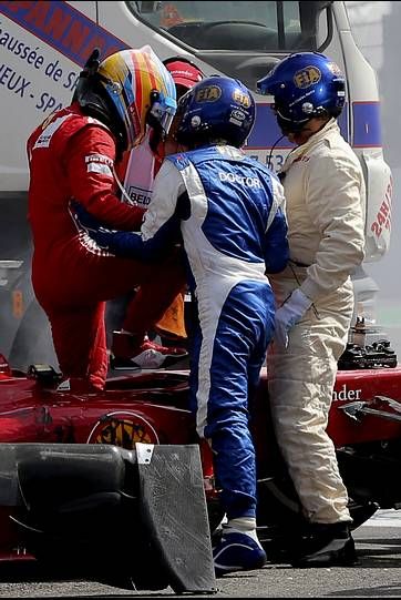 El piloto español Fernando Alonso tuvo que abandonar el Gran Premio de Bélgica, tras sufrir un aparatoso accidente antes de alcanzar la primera curva: “Al menos podré estar dentro de cinco días en Monza”, señaló el asturiano, quien de milagro no sufrió lesión alguna.