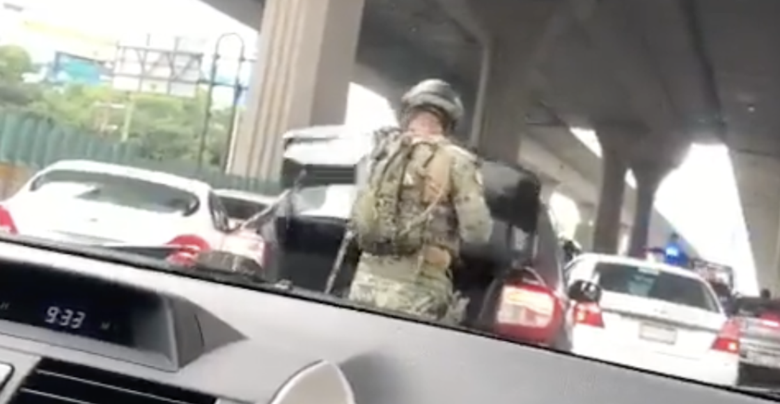 Un video comenzó a hacerse viral la tarde de este miércoles 7 de septiembre. La escena, la mera verdad, no era precisamente la más agradable: las imágenes —grabadas al interior de un coche— mostraban a militares uniformados, armados, abriendo las cajuelas de los automóviles que pasaban en Periférico.