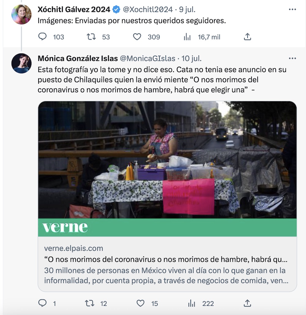 Si son muy clavados de la política mexicana, seguro ya vieron una foto que anda circulando en redes y muestra a una vendedora —de unas deliciosas tortas de chilaquiles— supuestamente apoyando a Xóchitl Gálvez.