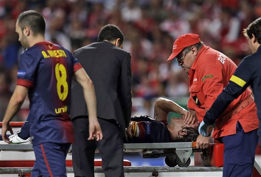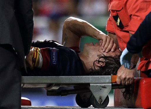 El catalán apoyó todo el peso de su cuerpo sobre su codo izquierdo provocándole una dolorosa lesión. El capitán tuvo que ser retirado en camilla. Ésta era la reaparición del jugador blaugrana, después de haber estado dos semanas fuera por una lesión en la rodilla izquierda. Puyol se perderá el Clásico del próximo sábado contra el Real Madrid.