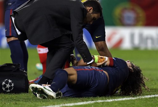 El defensa del Barcelona, Carles Puyol, se fracturó el brazo este martes en el partido en el que el Barcelona se impuso 2-0 al Benfica en la segunda jornada de la Champions League.